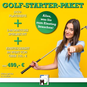 - Ein Einsteigerset im Wert von über 100 Euro bestehend aus: einem Golf Bag, einen Handschuh, Pitchgabel, 3er Sleeve Bällen